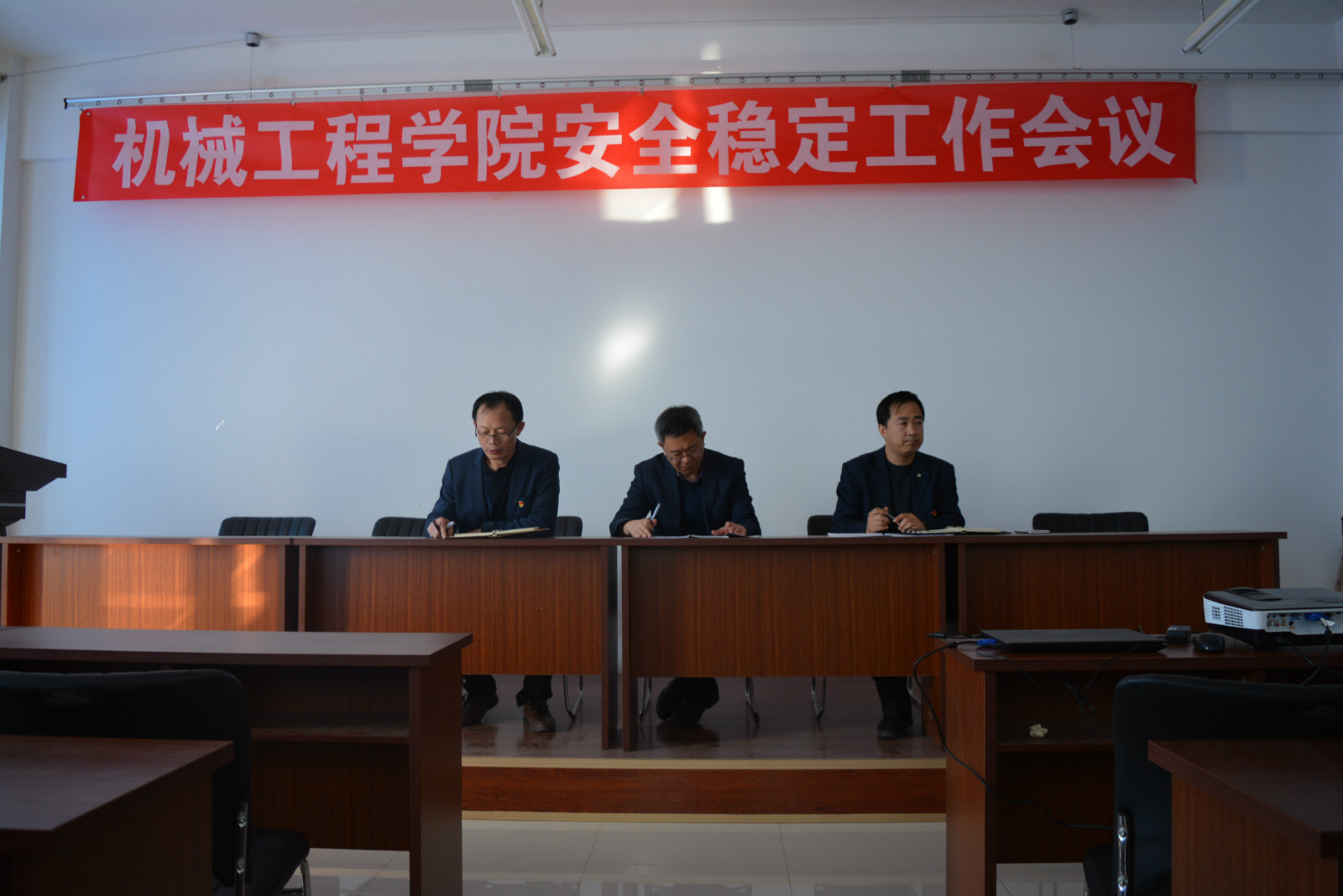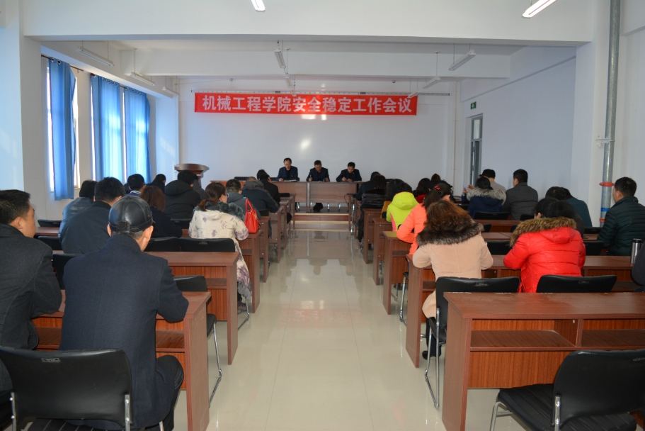 会上,梁建明院长首先传达了学校《关于建立维护学校安全稳定工作》的最新精神,并就学院下一步具体的安全稳定工作作出了具体部署。梁院长指出,全院师生要共同努力,实验室要规划合理,做到仪器设备安全;实习工厂要正确指导学生操作规范,做到实习安全;办公楼内各种档案存取合理,做好常规安全;宿舍隐患排查及时,确保基本安全。全体教师要树立较强的安全政治意识,具有高度责任感,课堂到位、学术规范、考勤及时,确保学生的基本安全。