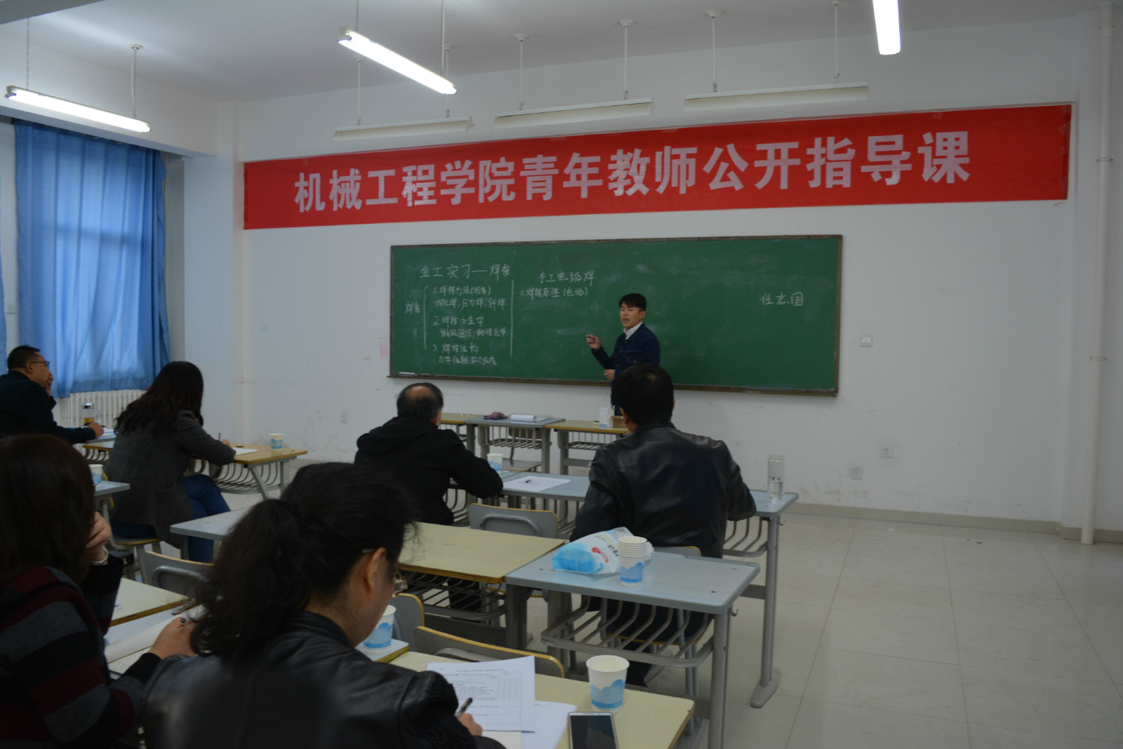 2018-2019学年新入职的6位青年教师王久强、王振兴、杨亚楠、任志国、刘向辉和郑永杰依次进行了板书讲课。讲课结束后,各位评委分别围绕教学方法、教学设计、课堂组织、教学效果等方面一一进行了现场点评,并提出了针对性极强的改进意见和建议。