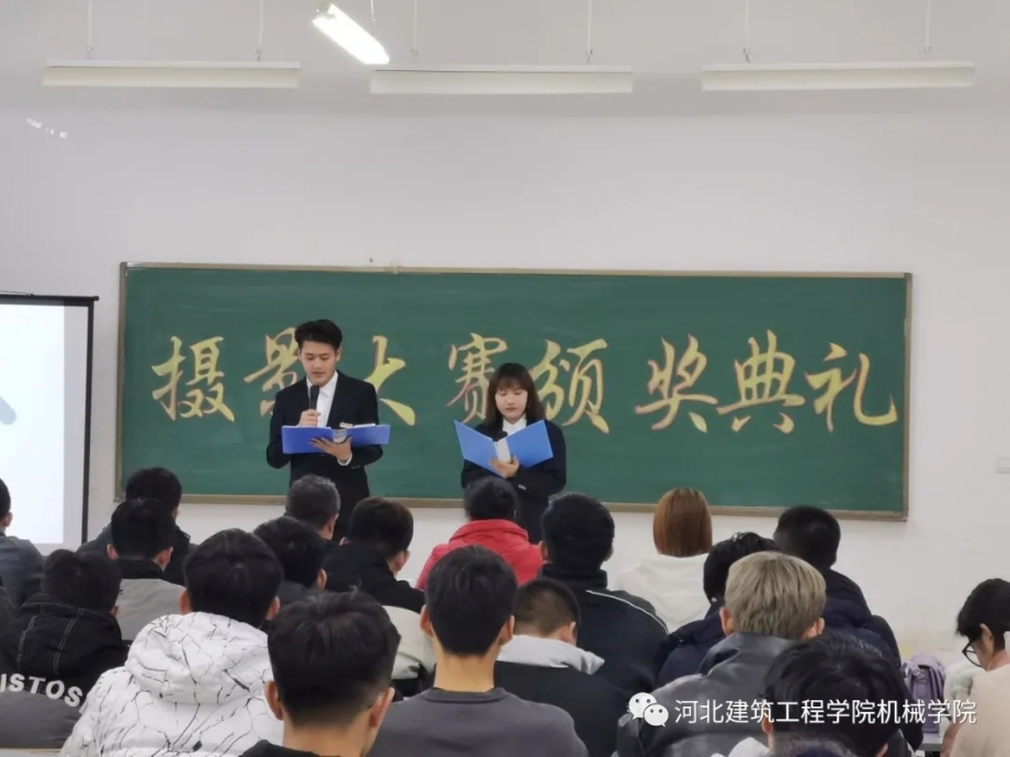 典礼开始,工作人员采用幻灯片播放与讲解相结合的方式展示参赛作品,作品内容有唯美灿烂的校园美景,有美轮美奂的校园建筑,有深沉厚重的建院文化,有轻松愉悦的校园生活。这些作品突出了建院之美,青春之美,奋斗之美,带给同学们极大的视觉震撼,以及心灵上的共鸣。韩仰熙教授对优秀作品进行细致地点评和指导,并从色彩、结构、立意等方面分享了摄影的经验和技巧,让同学们收获颇丰。最后由嘉宾为获奖选手颁奖并合影留念。